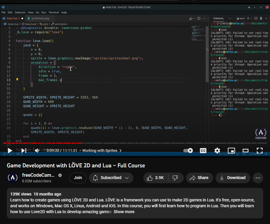 I am currently working my way through Free Code Camp’s 11-Hour Lua Course(!) I will add another post about my experience when I have finished this.