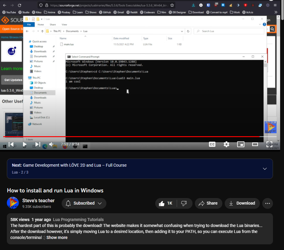 Installing Lua was not as straightforward as most program installions. I found this Youtube video helpful as a current Windows User.